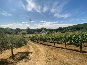 La struttura nasce su una roccia, in posizione dominante che osserva tutta la vallata ed è circondata da 7'000mq ca. di Terreno comodo, in parte seminativo e in parte a vigneto e uliveto.