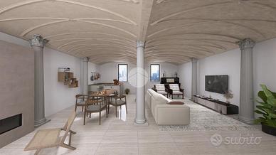 GUSSAGO ZONA MANDOLOSSA PORZIONE DI RUSTICO EX FIENILE DA RIATTARE All'interno di contesto di corte del 900', proponiamo questa interessante soluzione terra/cielo un tempo utilizzata come stalla e fienile. L'edificio, interamente da ristrutturare, ha sicuramente dei dettagli di sapore, come le colonne dallo stile basico, ma al contempo suggestivo ed i soffitti a volta, presenti in tutto il piano terra. Tutta l'area di ingresso è formata da un portico coperto di ca 40 mq, ideale anche come area di parcheggio, o come spazio esterno esclusivo. Al piano primo vi è l'area dell'ex fienile, ben delineata, e con la parete di confine rifatta integralmente a nuovo. La copertura, con orditura principale in legno, recuperata a regola d'arte permetterebbe di esaltare le capriate per rendere ancor più suggestiva la ristrutturazione. La metratura totale di quasi 200 mq permette di soddisfare l'esigenza di un privato, amante di un contesto di sapore ed in zona sicuramente tranquilla, come anche aprire la possibilità ad imprenditori di poter sfruttare l'esistente edificio per sfrutture metratura e cubatura affini al progetto pensato. Inoltre c'è possibilità di poter acquistare separatamente un'area limitrofa alla costruzione di ca 180 mq, per chi volesse oltre al portico d'ingresso, anche un'area verde, volendo da destinare ad uso parcheggio, o semplicemente come giardino privato. La zona è sicuramente molto tranquilla e comoda ai servizi, riuscendo ad offrire la possibilità di non spostarsi molto dal centro di Gussago, ma godere del verde circostante. NEL PRESENTE ANNUNCIO SONO INSERITI DEI RENDER INDICATIVI