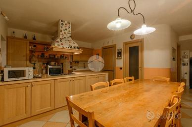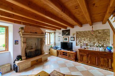 Dall'ingresso principale si raggiunge tramite un corridoio e una scala interna la zona giorno al primo piano: qui ci accoglie un soggiorno con uno spledido camino a legna funzionante, ideale per momenti di relax. A pochi gradini di distanza si trova la spaziosa cucina abitabile, perfetta per chi ama cucinare e intrattenere, con un'ampia penisola in pietra e spazio per una grande tavolata da 8 posti. Completano il piano una comoda dispensa e un bagno con doccia e antibagno, rinnovato recentemente.
