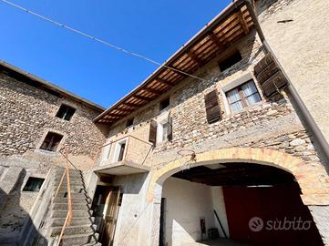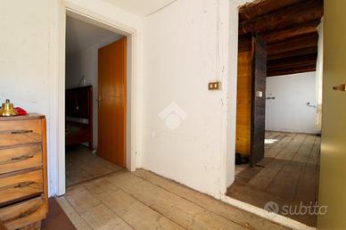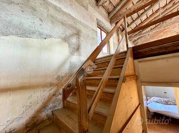 Varcando il portone principale di ingresso, si viene accolti dalla corte interna di circa 150mq che accoglie una serie di pertinenze un tempo adibite a stalle e ripostigli e i due fabbricati abitativi; nel vialetto d'accesso sulla destra si trova un pratico bagno di servizio finestrato con doccia e una stanza una volta adibita a conservazione vini.