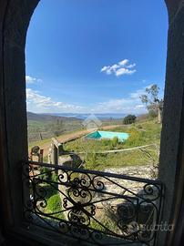 In posizione dominante con vista mozzafiato sulla valle e sul Lago di Bolsena, proponiamo in vendita un affascinante casale d'epoca immerso nel verde di 2 ettari.