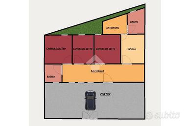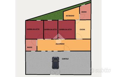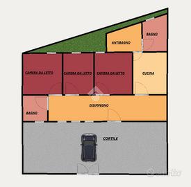 La soluzione, dotata di accesso sia pedonale che carraio che ci conduce all'ampio cortile di proprietà, si sviluppa su unico livello.