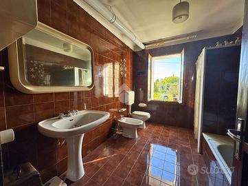 Al piano primo si accede alla zona notte composta a quattro camere matrimoniali, servite da un bagno finestrato con doccia e vasca.