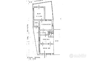 Al piano terra troviamo la zona giorno composta da cucina e soggiorno con caminetto a legna separati, percorrendo il corridoio troviamo due ripostigli e uno sgombero.