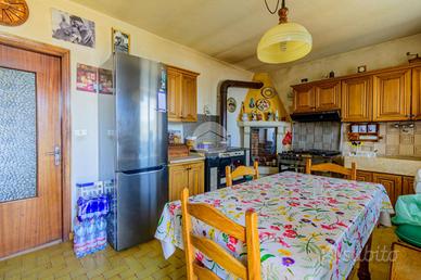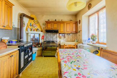 Al primo piano dove è presente l'ingresso principale, troviamo un'ampia zona giorno composta da cucina abitabile, soggiorno di generose dimensioni e un primo servizio finestrato.