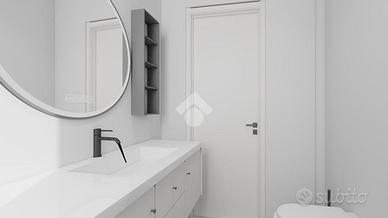 Proseguendo, troviamo l'antibagno che ci collega al primo bagno, completo di sanitari e zona lavanderia, funzionale e ben distribuito.