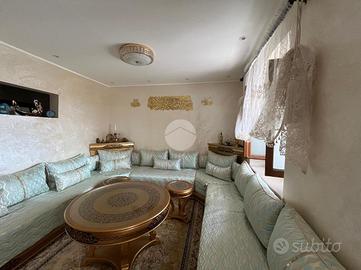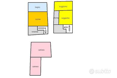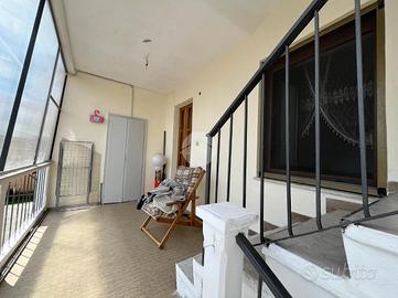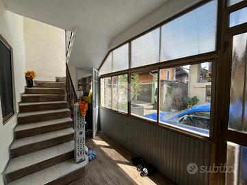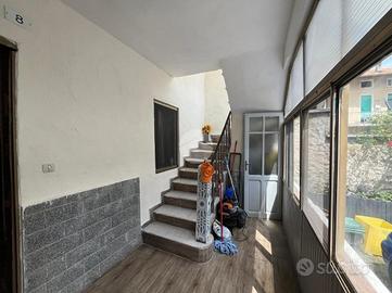 All'ingresso troviamo un vano scalo verandato che conduce alla cucina abitabile, a un ripostiglio e al bagno.
