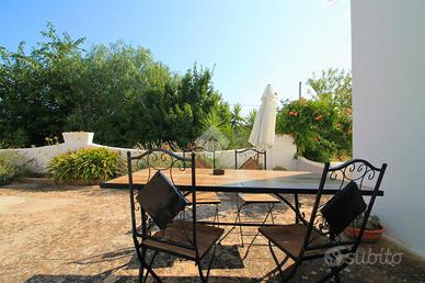 La dimora, facilmente accessibile dalla strada, è immersa in circa 1.200 mq di terreno curato, impreziosito da piante ornamentali, alcuni alberi di ulivo e filari di vite, che donano un'atmosfera tipicamente pugliese e un fascino senza tempo.