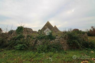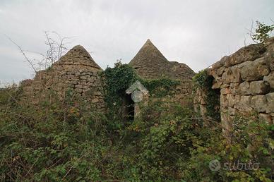 INCANTEVOLE TERRENO EDIFICABILE CON GRUPPO DI TRULLI A 5 CONI, IMMERSO NELLA QUIETE DELLA CAMPAGNA.