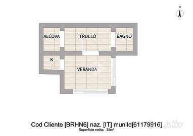 Un suggestivo viale d'accesso accompagna alla veranda in legno, uno spazio accogliente che diventa una vera e propria sala da pranzo all'aperto, perfetta per cene estive sotto le stelle e momenti di relax immersi nella natura e un funzionale cucinino. All'interno, il trullo si presenta in condizioni abitabili e conserva il suo fascino originario. Troviamo una sala principale calda e raccolta con due caratteristiche alcove: una pensata per accogliere un letto matrimoniale, creando un intimo angolo notte, e l'altra adibita a bagno completo con box doccia.