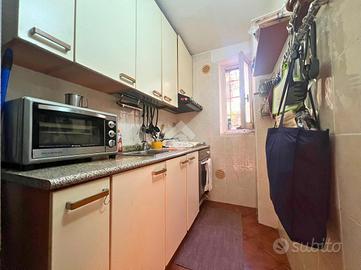 Entrando nella proprietà accediamo direttamente alla zona giorno, composta da un luminoso soggiorno,cucinotto, bagno finestrato con box doccia. Infine, completa il piano un indispensabile ripostiglio sottoscala.