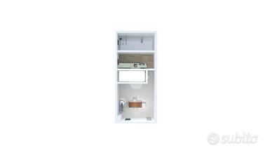 Entrando nella proprietà accediamo direttamente alla zona giorno, composta da un luminoso soggiorno,cucinotto, bagno finestrato con box doccia. Infine, completa il piano un indispensabile ripostiglio sottoscala.