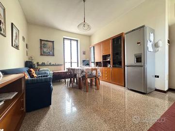 Situato al primo e ultimo piano, l'alloggio gode di doppia esposizione. L'ingresso si apre sulla zona giorno, dove soggiorno e cucina si integrano in un unico ambiente dotato di balcone. Un disimpegno conduce alla camera matrimoniale, a un funzionale ripostiglio e a un ampio bagno con doccia. Completa la proprietà un ulteriore balcone che si affaccia sul cortile, un altro ripostiglio e la cantina posta al piano seminterrato.