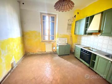 Porzione di casa di 113 mq. commerciali, da ristrutturare, disposta su due livelli con doppia esposizione con fronte a Sud, composta da due appartamenti bilocali, balcone e un locale cantinato.