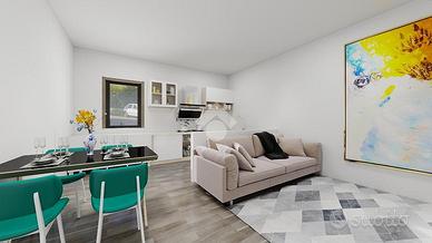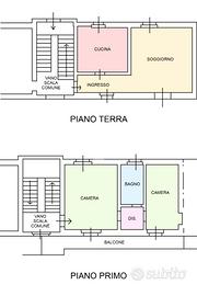 Al piano primo di 52 mq. circa, sono presenti due locali, un balcone con fronte a Sud, e un bagno con vasca, con accesso dalla scala interna comune.