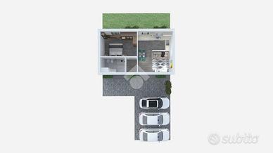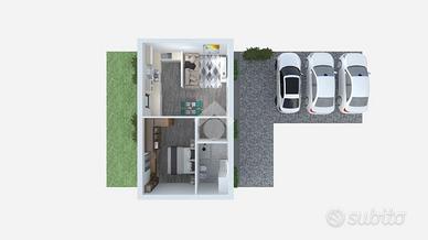 In alternativa si presta anche per ricavare un'unica abitazione, con la formazione di scala interna di collegamento tra i piani, composta da soggiorno, cucina e bagno al piano terra e due camere e bagno al piano primo.