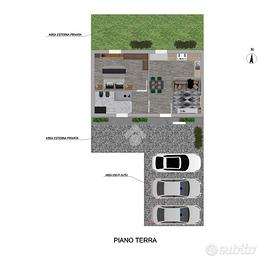Inoltre, di proprietà sono presenti due aree di ciascuna di 27 mq. (9x3 mt.), collocate davanti e sul retro del fabbricato ed un ulteriore area di 31 mq. (5x6.2 mt.) sempre di proprietà adatta ad uso di tre (3) posti auto all'interno del cortile.
