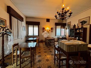 Internamente l'immobile è così disposto: al piano terra, si trova il ristorante, composto da: ampio ingresso soggiorno di 46 mq, collegato al cucinotto di circa 15 mq, un servizio e il disimpegno che collega a un'altra sala da pranzo di 40 mq. Tramite la scala interna presente in corridoio, si accede all'appartamento posto al piano rialzato, composto da: disimpegno, soggiorno di circa 20 mq, 4 camere da letto, di cui 3 camere da letto matrimoniali e uno studio, un secondo disimpegno, dal quale si accede al terrazzo di 50 mq, infine un secondo servizio.