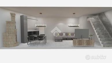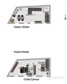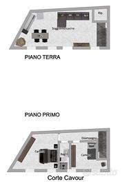 Al piano terra si sviluppa una zona giorno open space con soggiorno e angolo cottura, completata da un comodo ripostiglio.