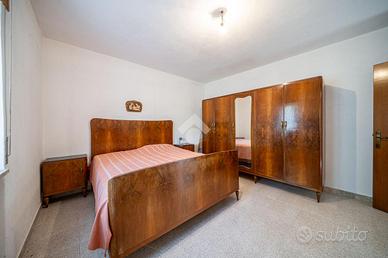 La soluzione si sviluppa su tre livelli: al piano terra sono presenti un ampio soggiorno, una cucina abitabile, un bagno finestrato e un ripostiglio. Dalla scala esterna si raggiunge il primo piano dove troviamo due camere matrimoniali, un ripostiglio e un bagno finestrato. Scendendo le scale si raggiunge il piano seminterrato dove sono presenti un garage e una cantina.