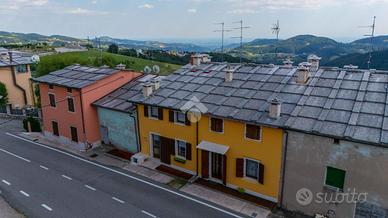 La soluzione si sviluppa su tre livelli: al piano interrato troviamo una taverna con camino e stufa a legna, al piano terra sono presenti soggiorno e cucina, mentre il piano primo si compone di una camera da letto matrimoniale, ripostiglio e bagno finestrato.