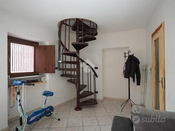 L'immobile, ristrutturato nei primi anni 2000 e mantenuto con cura, è pronto per essere abitato senza necessità di interventi immediati. Situato in prossimità del paese, dista circa 2 chilometri dal centro abitato. La parte abitativa si sviluppa su due livelli. Al primo piano si accede alla zona giorno, caratterizzata da un acogliente ambiente open space con soggiorno e cucina. Sullo stesso livello è presente un bagno funzionale, completo di vasca e attacchi per la lavatrice. Una scala a chiocciola conduce al piano superiore, il quale ospita due camere da letto, di cui una con accesso diretto al balcone, un bagno completo ed una cabina armadio. Inoltre sullo stesso piano è disponibile un ulteriore volume per la creazione di una terza camera. A completare la proprietà troviamo ancora al piano terra un box auto e le cantine, comode e spaziose, ideali come spazio di deposito.