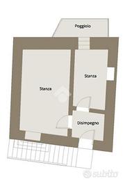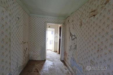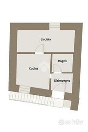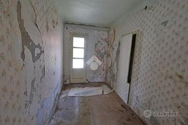 L'immobile si presenta attualmente allo stato grezzo e richiede una ristrutturazione integrale. La casa si sviluppa su due piani: piano terra con cucina, lisciaia e bagno cieco, tramite scala esterna si accede al primo piano con camera matrimoniale, stanza guardaroba e poggiolo che si affaccia su corte interna e tramite botola si può accedere al piano sottotetto.