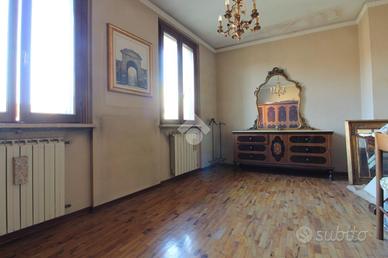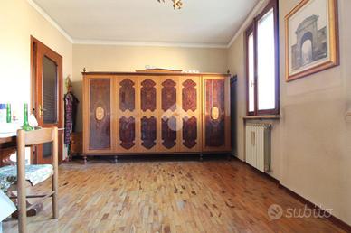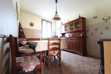 Casa indipendente in cortile con ampi spazi abitativi. Portico, ripostigli, cantina, due box e legnaia/fienile. Parzialmente da ristrutturare, libera subito.