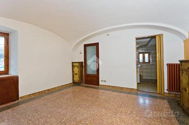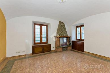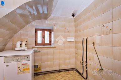 Al piano terra è presente il soggiorno con camino a legna, il cucinino e porzione di cortile di proprietà.