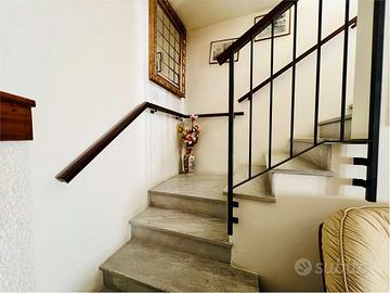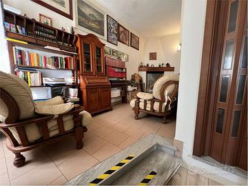 Piano terra:Soggiorno con camino, cucina, bagno, cantina + area soppalcata e giardinetto.