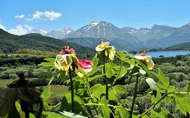 Ampio panorama sul lago e sul Gran Sasso.