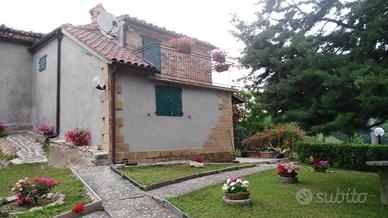 Vendesi casa affiancata località Serralta a 480 m di altitudine a 8 km dal centro di San Severino Marche (MC), con vista panoramica sui Monti Sibillini.e corno del Gran Sasso.