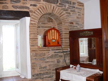 L'abitazione di 80 mq, costruita direttamente sullo scoglio di pietra gessina, si sviluppa su due livelli: al piano terra cucina con caminetto e stanza adibita a salotto, al piano superiore due camere con bagno e terrazzino. Finiture molto particolari.