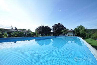 E' statisticamente provato, l'acquisto di una nuova Casa rappresenta uno dei momenti di massima Gioia per ognuno di noi!!! A questo proposito, vi possiamo garantire che, l'acquisto di questa splendida Villa, rappresenterà per i fortunati compratori, uno dei momenti più memorabili della loro vita. Pensate che 550.000 euro siano troppi, credete che stiamo dando i numeri ... bene allora per dimostrarvi che questo è un prezzo da vero affare «I numeri ve li diamo sul serio»: - 1800 metri quadrati di giardino. - 210 metri quadrati, tutti su un piano senza scalini. - La sola zona cucina e soggiorno vi offrono più di 100 metri quadrati calpestabili. In condizioni normali con questa metratura si fa un appartamento tre camere, due bagni con cucina abitabile. - 3 camere matrimoniali in cui la più piccola delle tre misura 18 metri quadrati e 4 bagni. - Un garage di oltre 100 metri quadrati con Centrale Termica e Lavanderia. - Oltre 80 metri quadrati di taverna, attrezzata con una cucina in muratura, dotata di forno a legna per le pizze, che definirla mozza fiato sarebbe come sminuirla. - 496 metri quadrati commerciale e 420 calpestabili su due livelli di cui uno seminterrato con uno splendido accesso carraio. - Arredi e rifiniture per oltre 100.000 euro. Penso che siate d'accordo con noi che quando comperate una casa nuova, i mobili e le rifiniture non ve li regalano. - Una recinzione fronte strada, perfettamente rifinita. Solo questa è costata oltre 15.000 euro. Ora se non siete ancora soddisfatti, veniamo agli optional: Impianto di irrigazione con cisterne per il recupero dell'acqua piovana, piscina fuori terra di 40 metri quadrati, doppio accesso automatizzato con telecomandi, impianto fotovoltaico in conto energia da 6 Kw/p, impianto solare termico, 4 unità di condizionamento e delle rifiniture estetiche da rivista, che con gli impianti di illuminazione scenici, completano un quadro a dir poco emozionante. Solo per le finiture in resina sono stati spesi più di 20.00