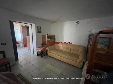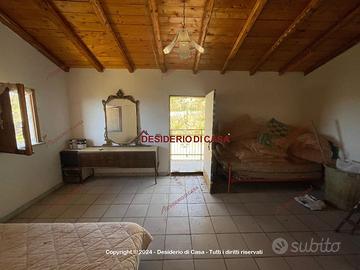 L'immobile presenta quadrupla esposizione e si estende su un vasto terreno di 18.000 mq arricchito da alberi da frutto; internamente è composto da ingresso, soggiorno, cucina abitabile, due camere da letto, altra stanza, ripostiglio ed un bagno con doccia.