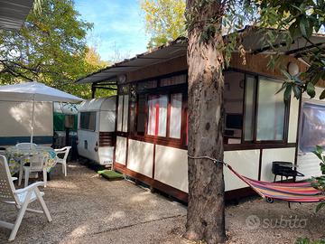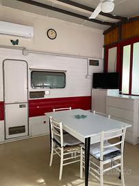 Vendo struttura in campeggio sul mare ad Agnone cilento , a 5 km da Acciaroli , composta da ampia piazzola pavimentata fresca ed ombreggiata con tavolo esterno e zona con amaca, ampio terrazzino chiuso verandato con tavolo e angolo salottino / TV provvisto di condizionatore nuovo su cui affacciano 2 roulotte che fungono da 2 camere separate ciascuna con 4 posti letto (per un totale di 8 posti letto, adatta anche per 2 famiglie), a parte c'è un modulo separato con cucina nuova e 2 bagni nuovi con doccia. Prezzo trattabile