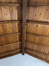 Sopra, il tetto in legno a vista, anch'esso completamente ristrutturato, rappresenta un autentico capolavoro: travi imponenti, tonalità calde e luce naturale creano un ambiente suggestivo e raffinato, perfetto per chi ama gli spazi che raccontano una storia.