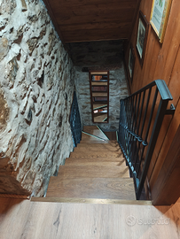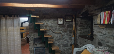 - Piano terra : Ingresso dal parcheggio. Saletta con camino a legna, canalizzato ai piani superiori. Divano letto matrimoniale. TV Sat. Altra saletta con cucinotto e bagnetto di servizio (WC/Lavabo) e stufa tipo tirolese, Presente scala alla marinara per accedere al primo piano che, comunque, può anche essere raggiunto tramite scala esterna.