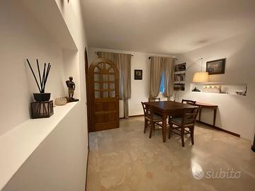 Al piano terra, ingresso, ampia cucina, sala da pranzo e lavanderia. Al piano primo troviamo la zona notte con due camere, stanza armadi, due bagni. Proseguendo al secondo piano un'ampia mansarda ad uso relax dove staccare dalla frenesia della quotidianità. Completa la proprietà, adiacente alla casa, la dèpendance di circa 80mq. ad oggi adibita a studio e posto auto. Completamente ristrutturata nel 1997, mq. 240. recentemente dotata di impianto fotovoltaico di 9kwh. batteria di accumulo da 45 kWh, pompa di calore con sistema ibrido oltre a tre climatizzatori posizionati nei tre piani.