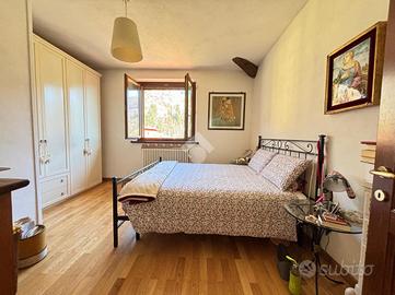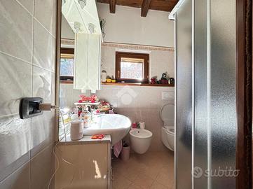 Al piano superiore si sviluppa la zona notte, composta da una camera matrimoniale, una cameretta e un ampio bagno finestrato.