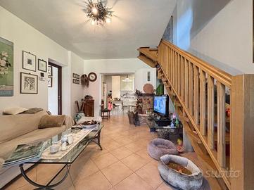 Al piano terra troviamo un'ampia zona giorno impreziosita da un grande e funzionale camino, una cucina abitabile con accesso diretto a un porticato, ideale per pranzi e momenti di relax all'aperto, che conduce direttamente al giardino. Completano il piano un bagno, un ripostiglio e il garage, collegato internamente all'abitazione e che, grazie alle generose metrature, alle altezze e alla presenza di finestre, risulta facilmente trasformabile in una spaziosa camera da letto.