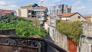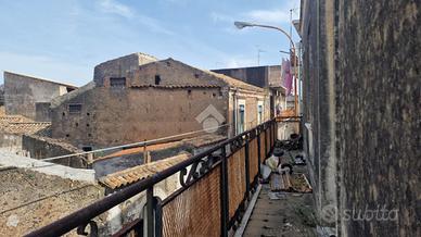 Nel cuore di Aci Sant'Antonio, a pochi passi da Piazza Maggiore, piazza principale del paese, con le attività ed i servizi di prima necessità nelle immediate vicinanze e raggiungibili anche a piedi come il supermercato M.D., l'ufficio postale, i bar, il panificio Madonna delle Grazie. Il contesto è il tipico centro storico con case indipendenti, semi indipendenti e palazzetti a schiera realizzati tra gli anni '30 e '60. L'immobile: realizzato agli inizi degli anni '60, casa indipendente ubicata ad angolo tra via Ospedale e via Oratorio con accesso principale da via Ospedale, direttamente su scala interna privata di accesso all'abitazione al piano primo. Due vani comodi, entrambi con uscita sul balcone a giro di mq 12. Angolo cottura e bagno a completare gli spazi interni di casa. Al piano terra, accessibile anche dall'interno del vano scala, un garage di mq 44, con due ampi accessi con doppia saracinesca su via Ospedale. Da ristrutturare interamente le condizioni, da rifare gli impianti, infissi in legno mono vetro, riscaldamento assente. Da ripristinare il balcone e da revisionare il tetto. Per ulteriori informazioni contattaci o vieni a trovarci via Lavina 347, Aci Sant'Antonio. Ti Aspettiamo!