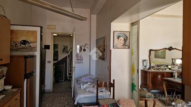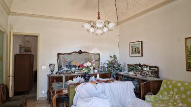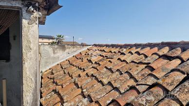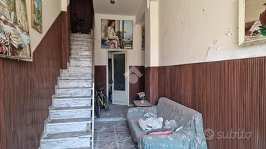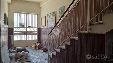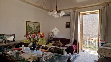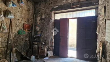 Nel cuore di Aci Sant'Antonio, a pochi passi da tutti i servizi di prima necessità come il bar Maugeri, la storica pasticceria Miraglia, il supermercato Coop, panifici, gommista e altre attività, tutte facilmente raggiungibili a piedi. Proprio alle spalle della casa è in corso la realizzazione di una nuova piazza pedonale, pensata come spazio di aggregazione e passeggio per gli abitanti della zona. L'immobile è inserito in un contesto caratteristico, formato da case indipendenti e semindipendenti a schiera, tipiche del centro storico edificato tra gli anni '30 e '50. La casa, edificata prima del 1939 e sopraelevata alla fine degli anni '60, si sviluppa su due livelli con ingresso principale da via San Biagio, dove è presente anche un garage allo stato grezzo di 23 mq. Adiacente al garage, troviamo un ulteriore ambiente e un bagno da ristrutturare completamente. L'ingresso è su ampio androne, da cui parte una scala interna che conduce al primo piano. Qui si accede a un disimpegno centrale con una scala a chiocciola che porta al terrazzo sovrastante di 18 mq, situato sopra la cucina e il bagno. Dal disimpegno si accede al bagno, alla camera matrimoniale e alla cucina, quest'ultima separata dal soggiorno tramite una vetrata scorrevole decorata a mano. Cucina e soggiorno si affacciano su un balcone panoramico con vista sulla via San Biagio. Gli ambienti principali con tetti a volta in gesso da restaurare e copertura con tegole. L'immobile si presenta interamente da ristrutturare, con impianti elettrico e idrico originali, assenza di riscaldamento, infissi in legno mono vetro e persiane in alluminio color oro. Per ulteriori informazioni o per fissare un appuntamento contattaci o vieni a trovarci in via Lavina 347, Aci Sant'Antonio!