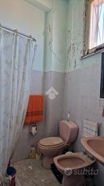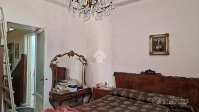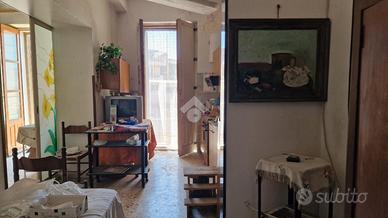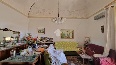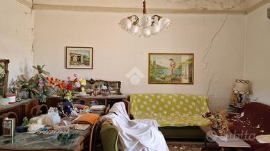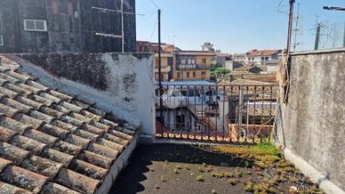 Nel cuore di Aci Sant'Antonio, a pochi passi da tutti i servizi di prima necessità come il bar Maugeri, la storica pasticceria Miraglia, il supermercato Coop, panifici, gommista e altre attività, tutte facilmente raggiungibili a piedi. Proprio alle spalle della casa è in corso la realizzazione di una nuova piazza pedonale, pensata come spazio di aggregazione e passeggio per gli abitanti della zona. L'immobile è inserito in un contesto caratteristico, formato da case indipendenti e semindipendenti a schiera, tipiche del centro storico edificato tra gli anni '30 e '50. La casa, edificata prima del 1939 e sopraelevata alla fine degli anni '60, si sviluppa su due livelli con ingresso principale da via San Biagio, dove è presente anche un garage allo stato grezzo di 23 mq. Adiacente al garage, troviamo un ulteriore ambiente e un bagno da ristrutturare completamente. L'ingresso è su ampio androne, da cui parte una scala interna che conduce al primo piano. Qui si accede a un disimpegno centrale con una scala a chiocciola che porta al terrazzo sovrastante di 18 mq, situato sopra la cucina e il bagno. Dal disimpegno si accede al bagno, alla camera matrimoniale e alla cucina, quest'ultima separata dal soggiorno tramite una vetrata scorrevole decorata a mano. Cucina e soggiorno si affacciano su un balcone panoramico con vista sulla via San Biagio. Gli ambienti principali con tetti a volta in gesso da restaurare e copertura con tegole. L'immobile si presenta interamente da ristrutturare, con impianti elettrico e idrico originali, assenza di riscaldamento, infissi in legno mono vetro e persiane in alluminio color oro. Per ulteriori informazioni o per fissare un appuntamento contattaci o vieni a trovarci in via Lavina 347, Aci Sant'Antonio!