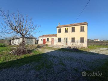 AGNA: Nella tranquilla campagna nei dintorni di Agna in località Frapiero, proponiamo casa di corte da ristrutturare con annessi e circa un ettaro di terreno agricolo di proprietà. L'abitazione di circa 130 mq sviluppata su due livelli si compone di 7 vani da ristrutturare, è un'ottima soluzione per chi cerca la tranquillità della campagna veneta. L'immobile non si affaccia direttamente sulla strada principale ma è accessibile da un passaggio laterale di servizio promiscuo. A completare la proposta, un ettaro di circa di seminativo/arboreo di forma regolare con accesso dedicato.