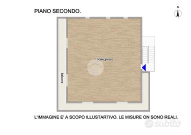 Il secondo piano è attualmente una soffitta allo stato grezzo, dotata di balcone semi-perimetrale.