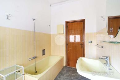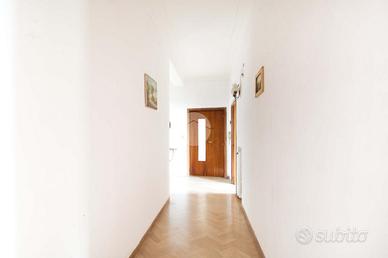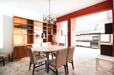 Il primo piano ospita un secondo appartamento composto da soggiorno, sala da pranzo con angolo cottura, veranda, quattro camere da letto, di cui tre matrimoniali e una singola, doppi servizi finestrati - uno dei quali riservato a una camera - e un terrazzo semi-perimetrale.