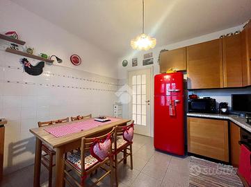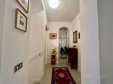 L'abitazione è sviluppata su più livelli. Al piano terra si trova la cucina abitabile, il soggiorno ed un bagno cieco. Salendo le scale si hanno le tre camere da letto con bagno finestrato, tutti i locali con accesso ai poggioli. Infine l'ultimo piano offre un sottotetto abitabile con bagno che può essere utilizzato come quarta camera da letto.
