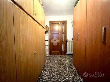 L'abitazione è sviluppata su due livelli: al piano terra troviamo soggiorno con cucina separata. Dalla cucina passiamo ad un disimpegno che porta alla prima camera da letto e al primo bagno. Salendo le scale abbiamo il secondo bagno, lo studio e la seconda camera da letto. Esternamente gode di un ampio cortile che si sviluppa anche dietro la casa con un piccolo deposito. Fuori dall'abitazione c'è un ampio spazio anche per diversi posti auto.
