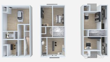 Al piano terra troviamo un appartamento con cucina, camera da letto, un bagno e box auto.
